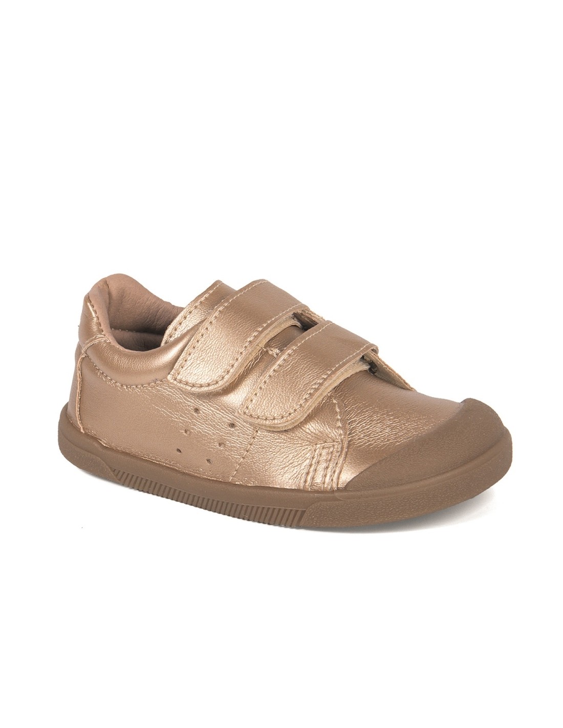 Zapatillas deportivas barefoot para niños fabricadas en efecto piel con cierre de velcro con tiras adherentes, que aportan mayor sujeción y facilitan el calce, fomentando su autonomía. Refuerzo en la puntera para una mayor resistencia y durabilidad.