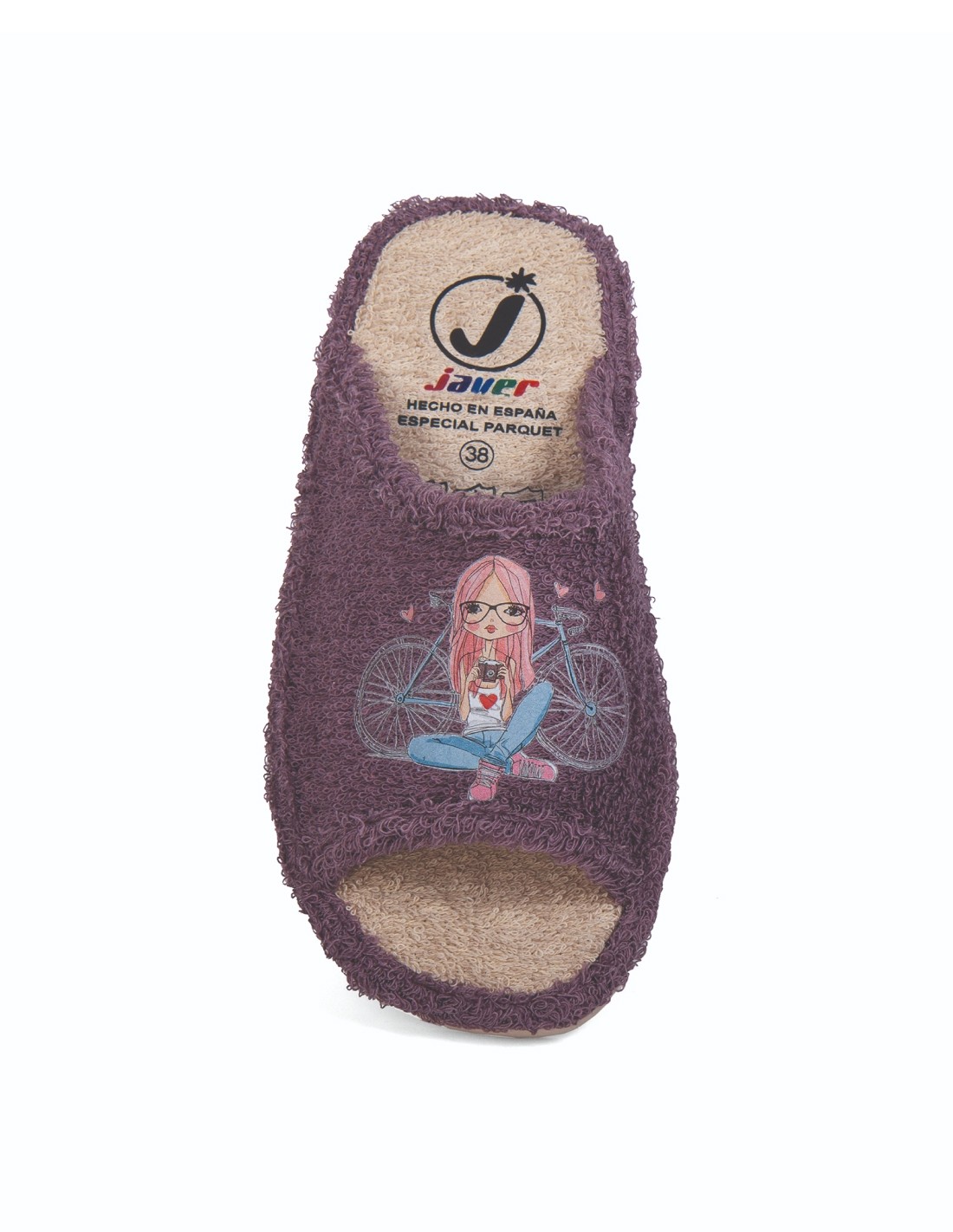 Zapatillas de casa verano mujer puntera abierta niña y bicicleta