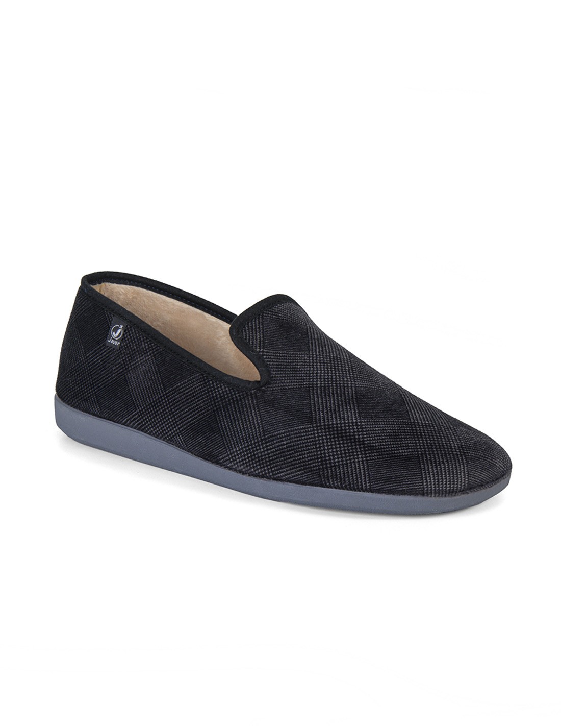 Zapatilla de casa cerradas en color gris. Fabricado en España con la suela vulcanizada 100% caucho natural y pelito suave para ofrecer una sensacion de confort y calidez